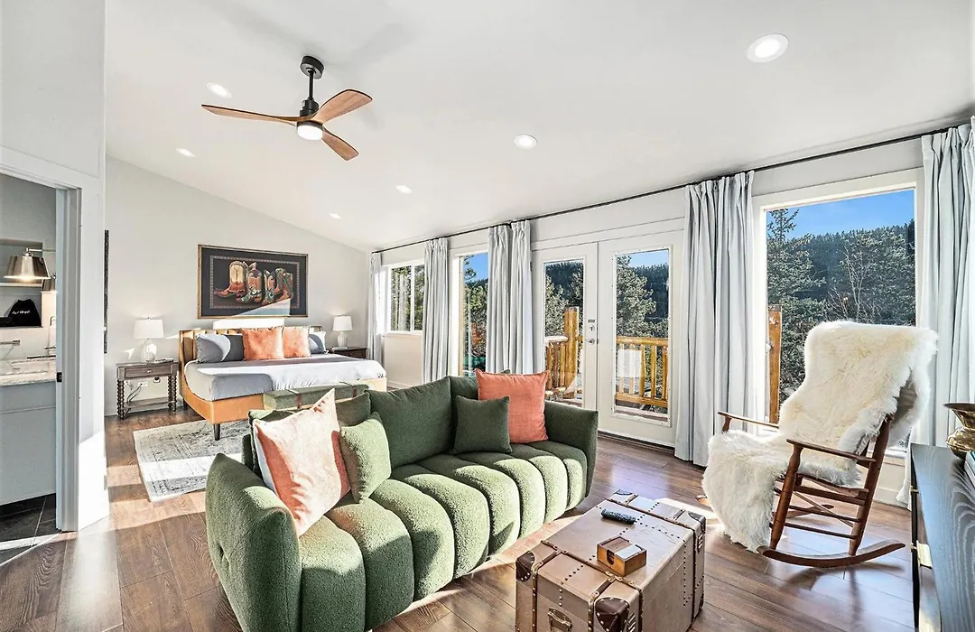 Die 3-Zimmer- Grand Vistas Chalet Hot Tub & Scenic Relaxation verfügt über Parkplätze und eine sonnige Terrasse mit Aussicht auf die Berge.